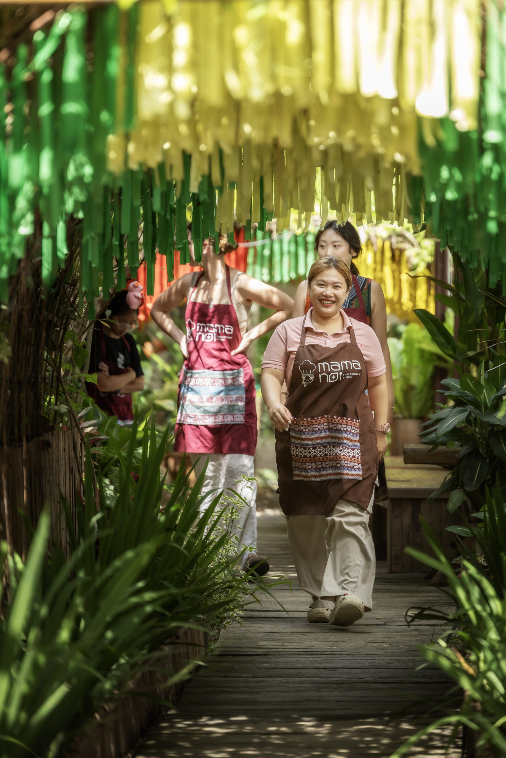 Everything! Songthaew pickup/dropoff, market tour, garden walk, cooking class, all ingredients, recipes, and photos.